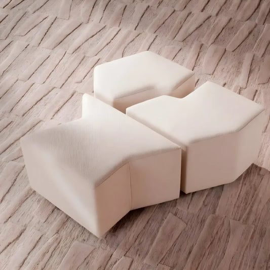 Cream Fabric Ottoman Pouf Set of 3 Soft Floor Cushions for Living Room Seating Comfortable Floor Pillows