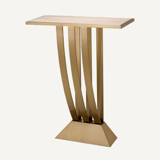 Brushed Brass and Travertine Stone Console Table for Entryway and Living Room