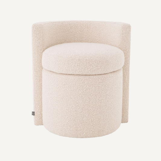 Cream Boucle Fabric Upholstered Stool Chair Bench Seat