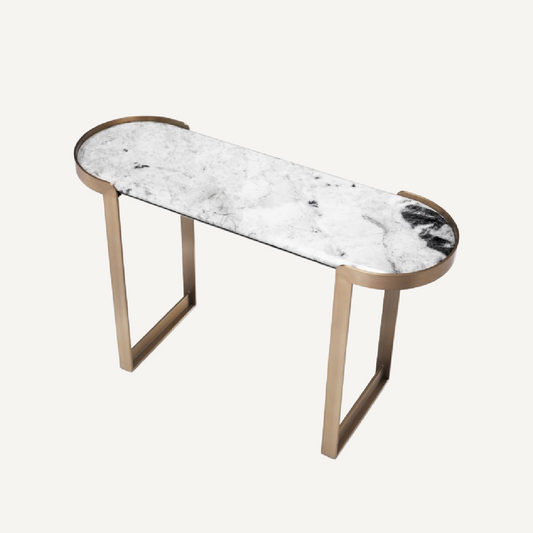 Brushed Brass Console Table with White Marble Top Modern Entryway Table