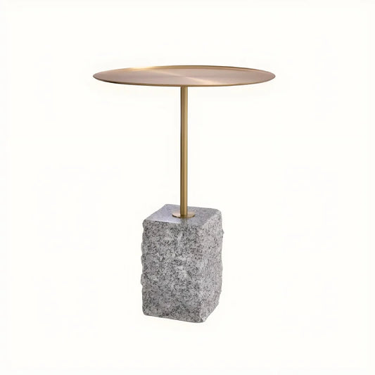 Gold Accent Side Table with Gray Granite Top Modern End Table