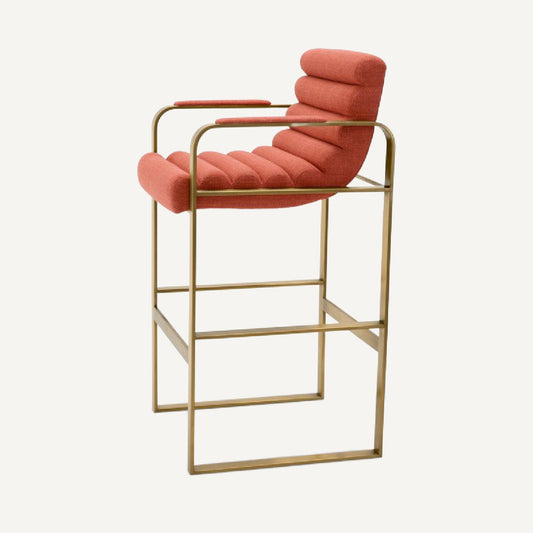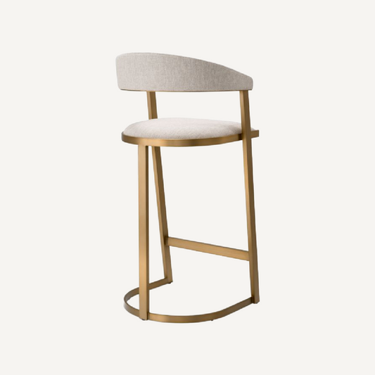Gold Bar Stool with Sand Fabric Seat Upholstery