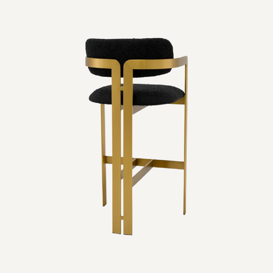 Gold Bar Stool Black Boucle Upholstered Modern Counter Height Chair