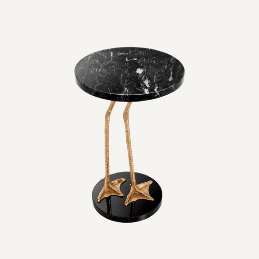 Gold Accent Side Table with Black Marble and Granite Top Modern End Table