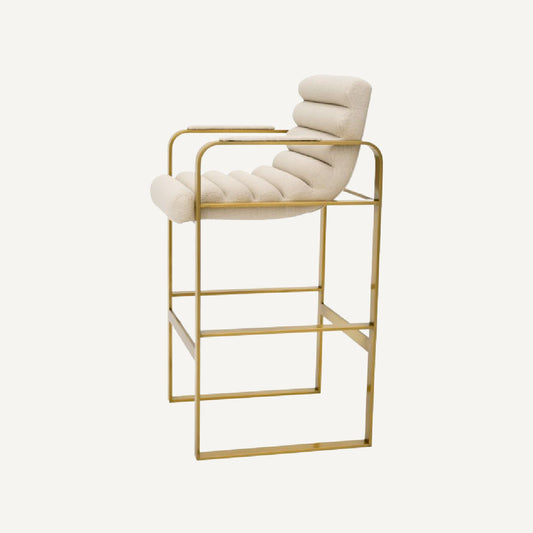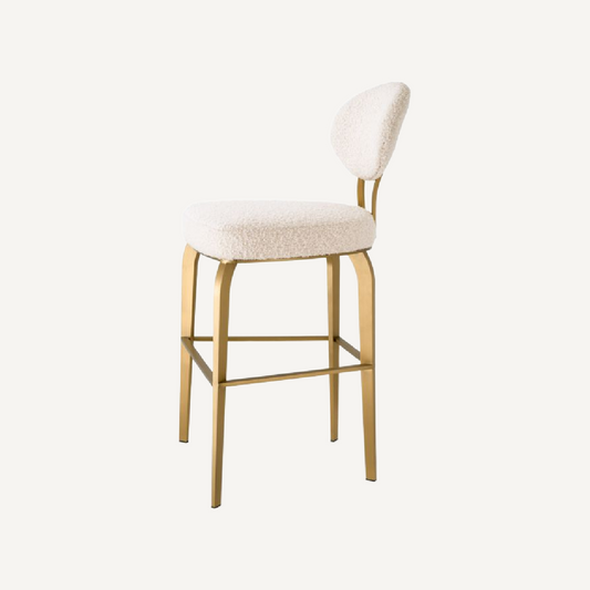 Gold Bar Stool with Cream Boucle Fabric Upholstery