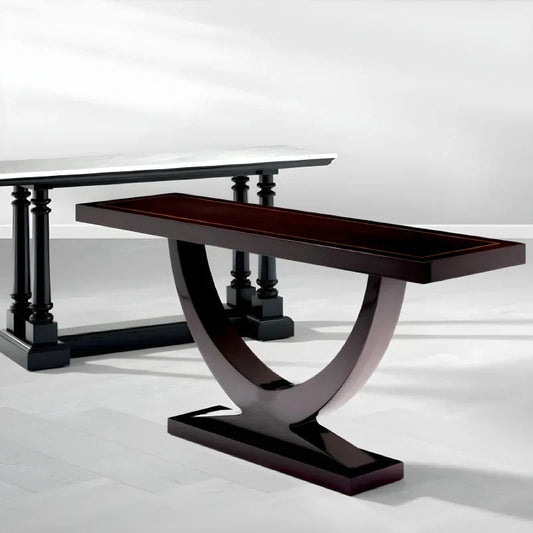 Glossy Smoked Eucalyptus Wood Console Table Natural Storage Furniture