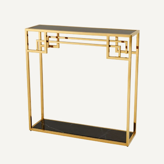 Gold Console Table with Black Marble Top Modern Entryway Hallway Accent Table