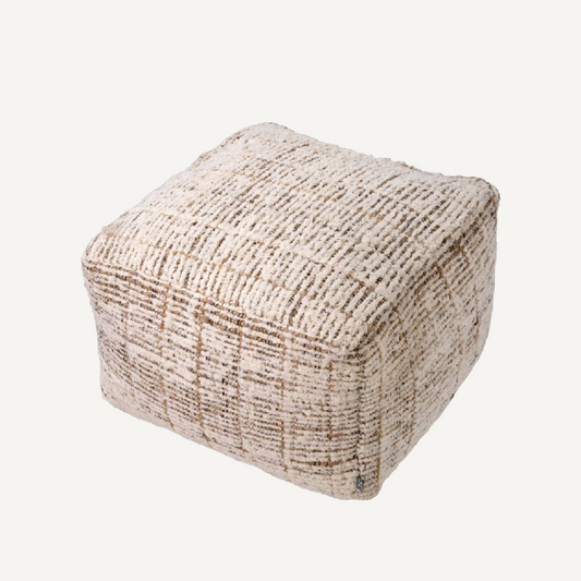 Ivory and Brown Fabric Pouf Ottoman Footrest Upholstered Seat Cushion
