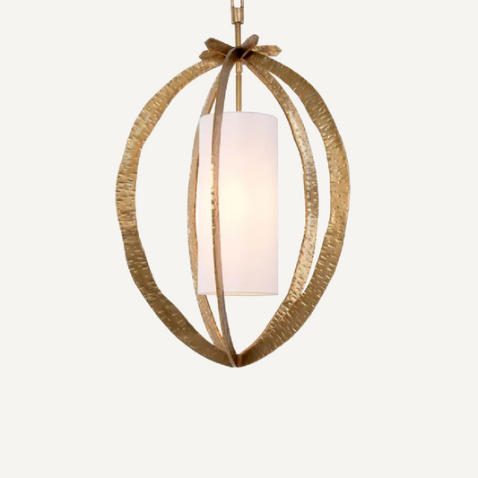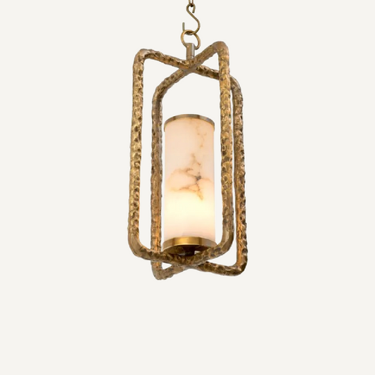 Hammered Brass and Alabaster Pendant Light Chandelier