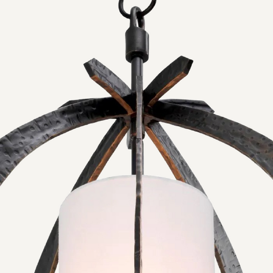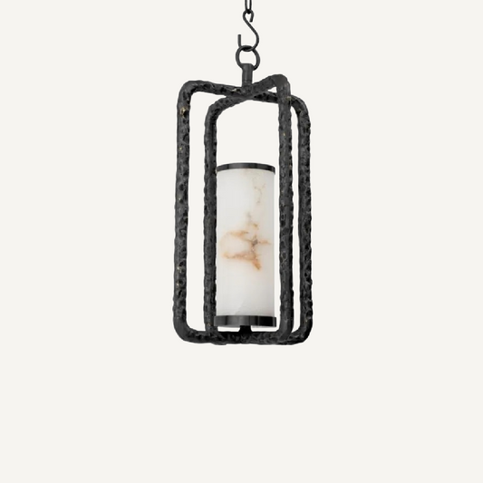 Hammered Bronze and Alabaster Pendant Light Chandelier for Dining Room