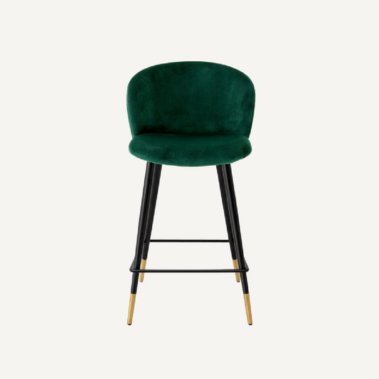 Green Velvet Counter Stool Upholstered Bar Chair with Backrest