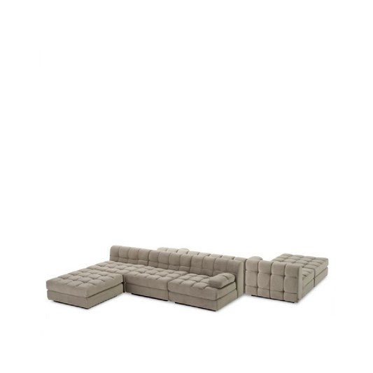 Modular Velvet Pouf Ottoman Neutral Greige Accent Chair Comfortable Modern Living Room Seat