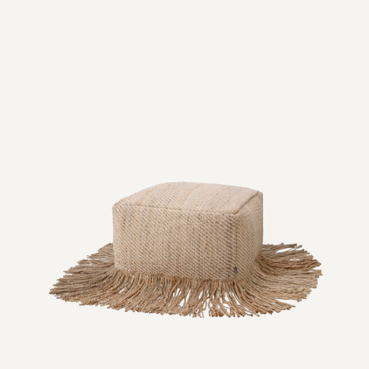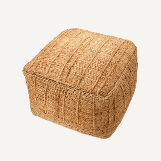 Natural Brown Jute Pouf Rustic Floor Cushion Ottoman Sustainable Eco Friendly Seating