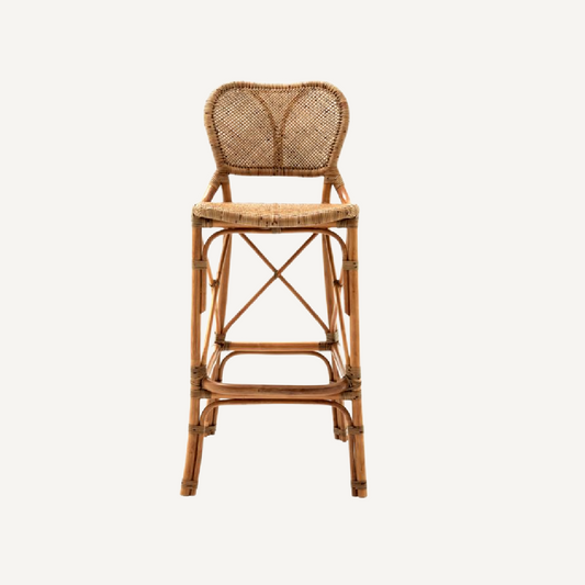 Natural Brown Rattan Bar Stool Woven Counter Height Chair