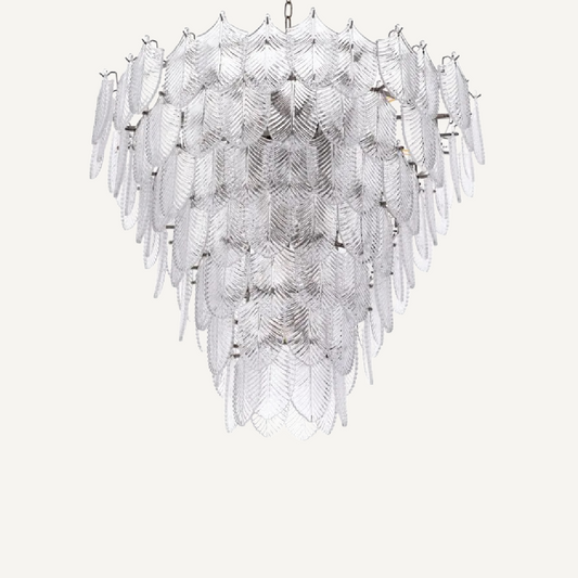 Nickel Finish Chandelier with Clear Glass Shade Modern Hanging Light Fixture