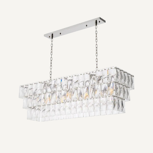 Nickel Finish Rectangular Crystal Chandelier Lighting Fixture Modern Sparkling Ceiling Light