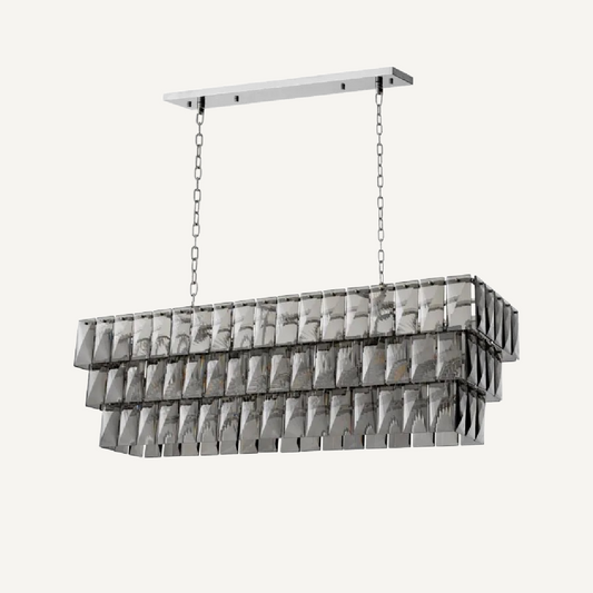Rectangular Smoked Crystal Nickel Chandelier Light Fixture