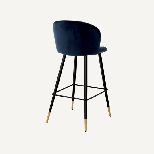 Night Blue Velvet Counter Height Bar Stool Chair with Backrest