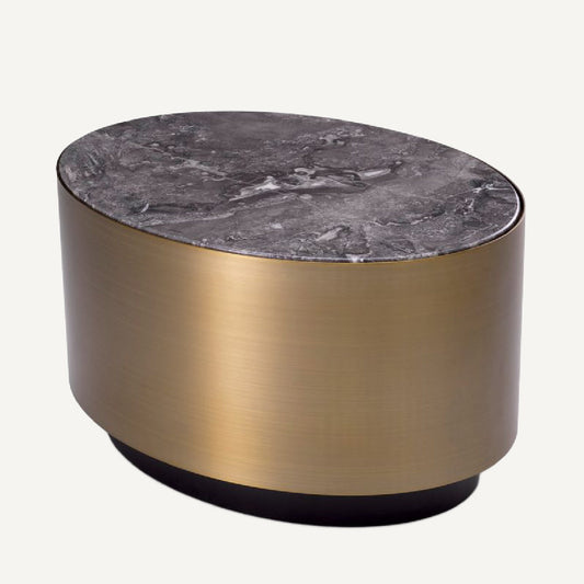 Oval Gold Accent Table with Gray Marble Top Modern Coffee Side Table