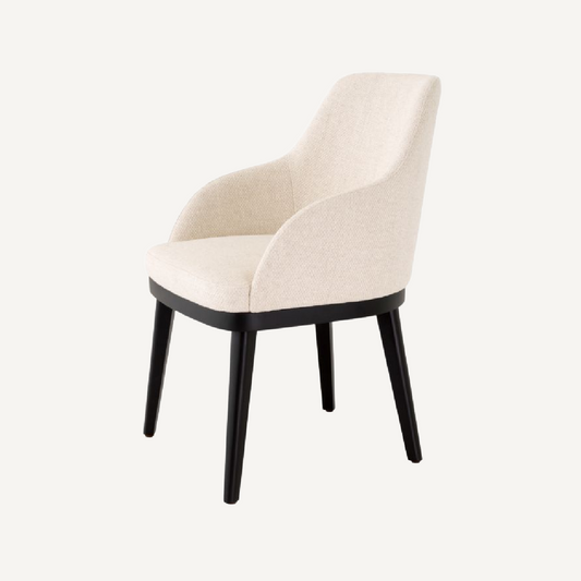 Off White Upholstered Dining Chair with Armrests Comfortable Modern Kitchen Seating