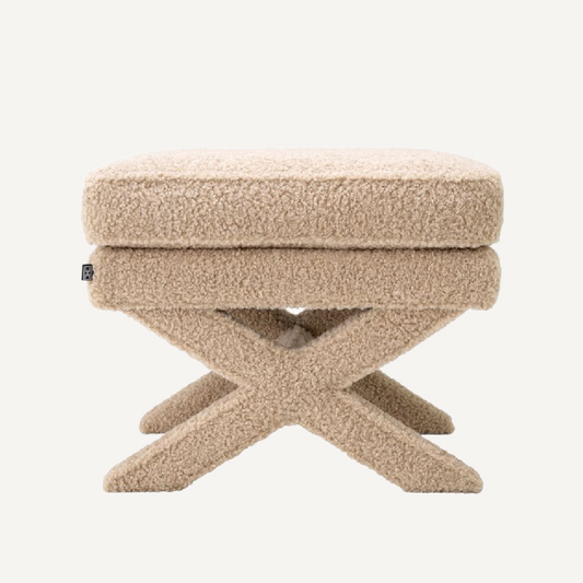 Off White Fabric Upholstered Stool Modern Home Office Seating Contemporary Cushioned Seat