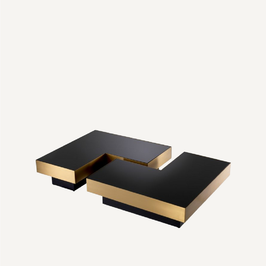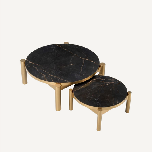 Set of 2 Gold Nesting Coffee Tables with Black Ceramic Tops Modern Accent Tables