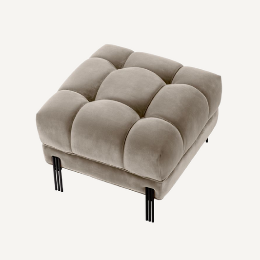 Greige Velvet Pouf Ottoman Floor Cushion Soft Upholstered Seat Pouffe Ottoman Pillow