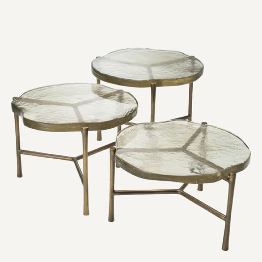 Set of 3 Gold Glass Coffee Tables Hand Blown Modern Accent Tables