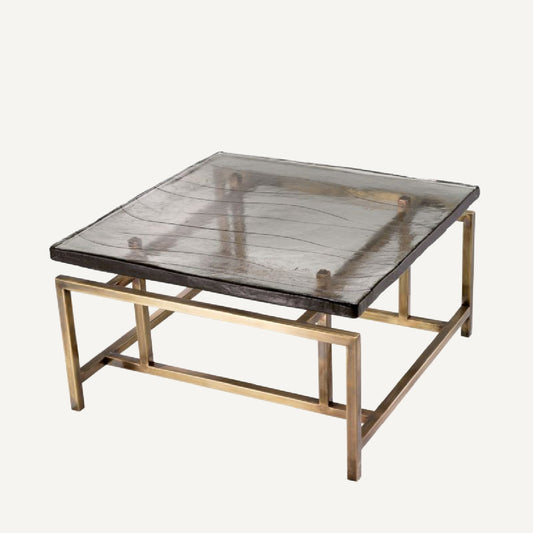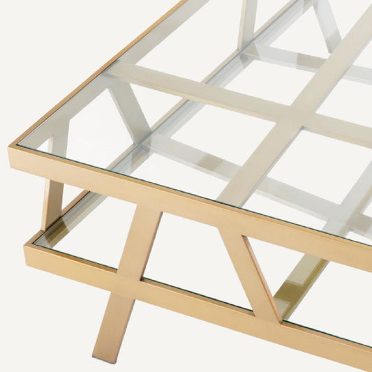 Gold Smoked Glass Coffee Table Modern Elegant Center Table with Metallic Finish