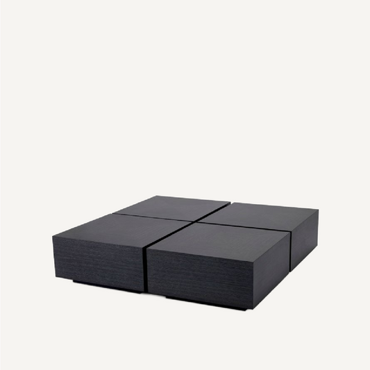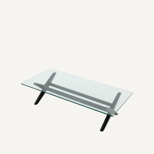 Black Wood and Clear Glass Top Coffee Table Modern Living Room Furniture