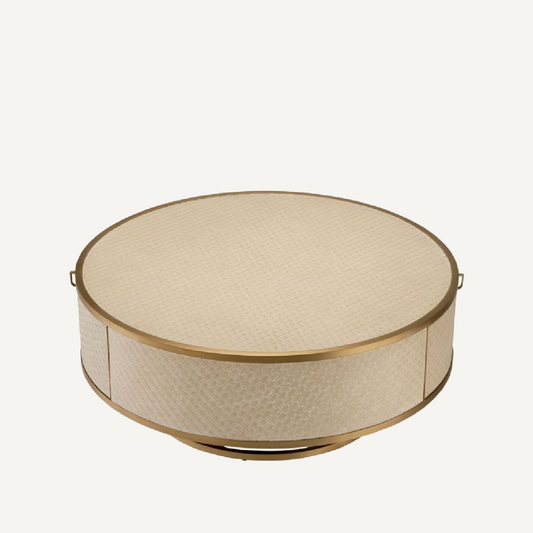 Woven Oak Coffee Table with Gold Metal Frame Modern Living Room Accent Table