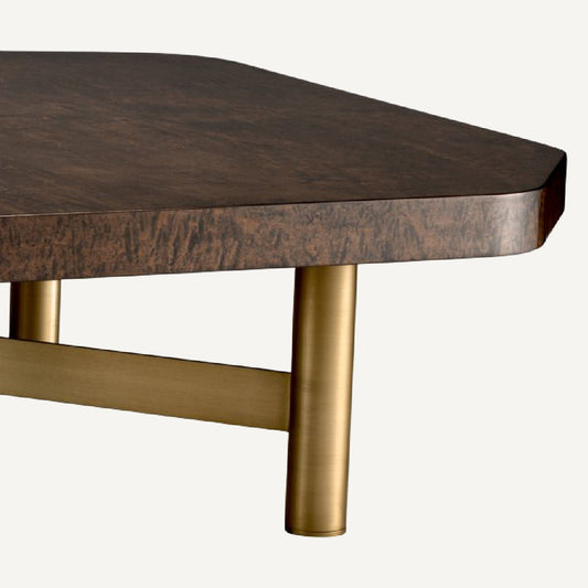 Glossy Maple Wood Gold Accent Coffee Table Contemporary Living Room Furniture