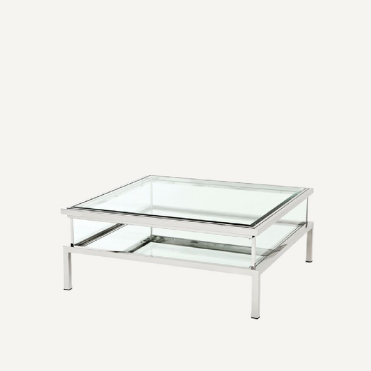 Silver Metal Square Coffee Table Modern Living Room Accent Table