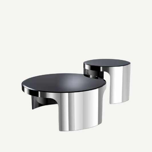 Set of 2 Black Glass and Silver Metal Coffee Tables Modern Living Room Accent Tables