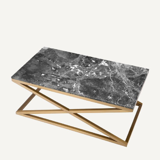 Gold Metal and Gray Marble Coffee Table Modern Coffee Table with Metal Frame and Marble Top
